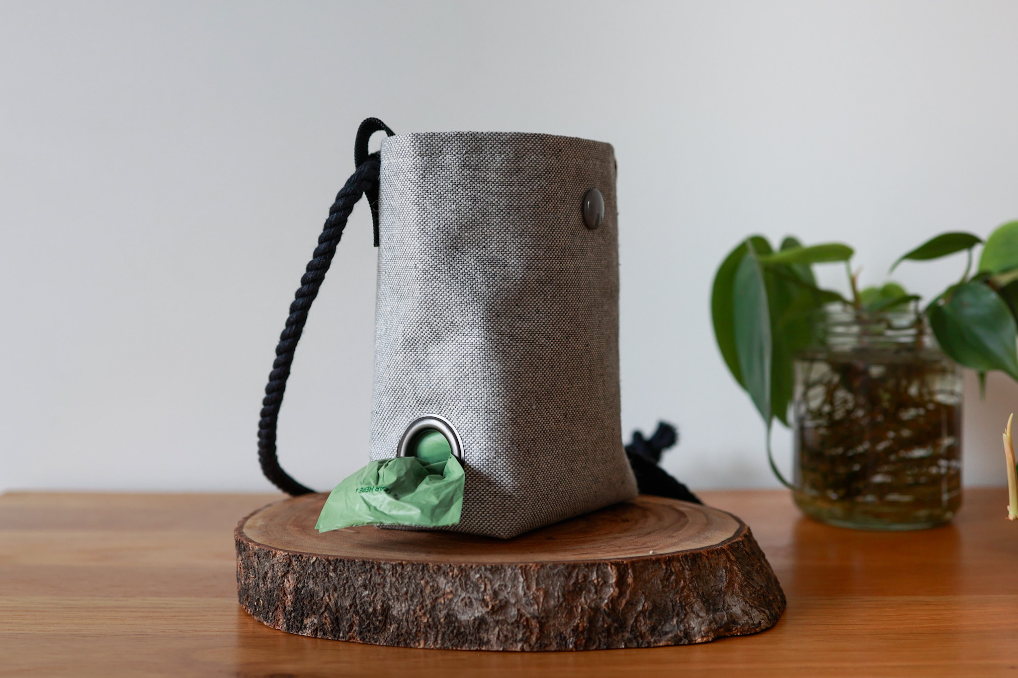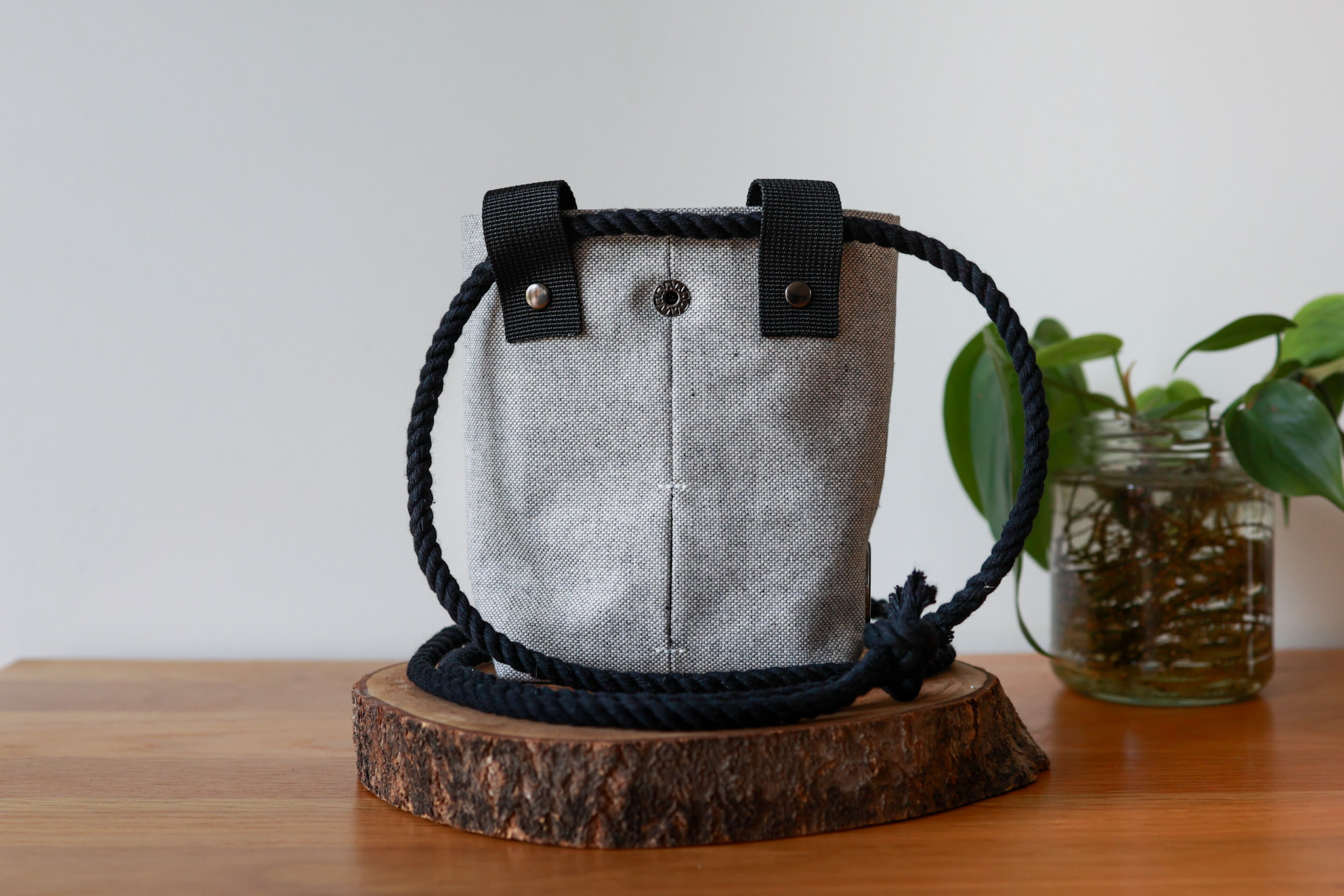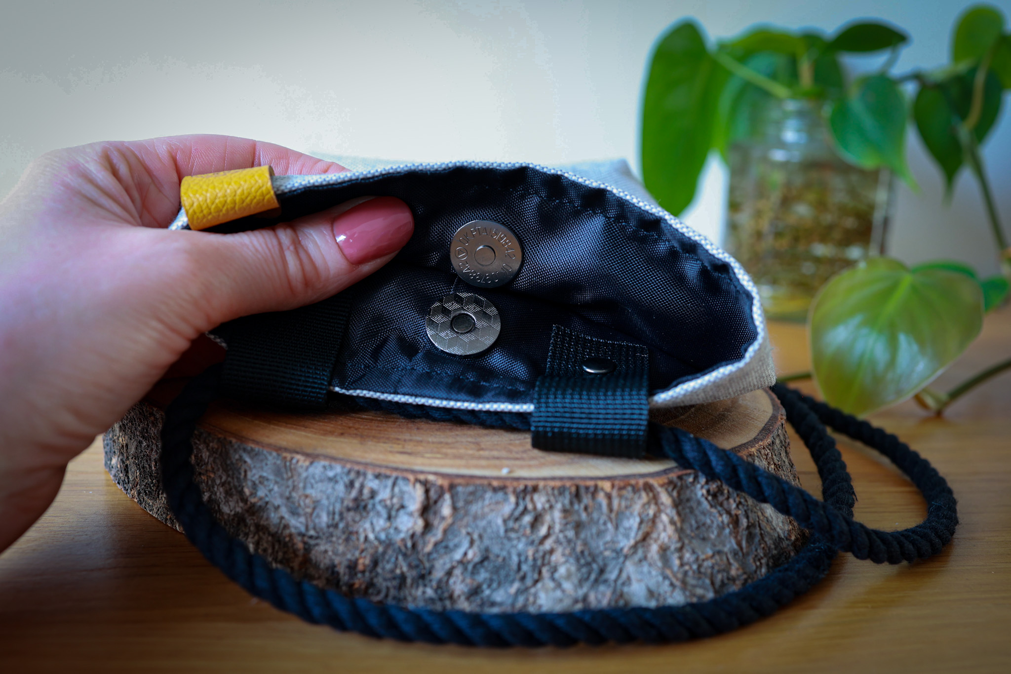 The bag is supplied with our black soft cotton rope (190cm) meaning it can work as both a waist or shoulder bag. If you are only going to use this bag on your waist, simply re-knot one of the ends and trim down the excess rope. Make sure you leave enough room to either step in or slide the rope over your head.
